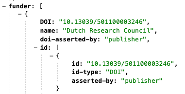 On the right, we see how APS has included this information in the metadata of the publication: NWO is identified with its Funder ID and the grant with the Grant ID - forging an unambiguous link between funding and publication, initially between this particular grant and this particular publication, but potentially in the future between this grant and all other outputs arising from it. This works so long as all publishers include this information in the metadata of their publications; we need to encourage more publishers and other Crossref members (e.g., preprint services, repositories, blog platforms) to follow the APS example and do the same.